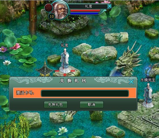 【使用方法】进入游戏后,在游戏中隐龙村“礼官”处,对话输入即可。